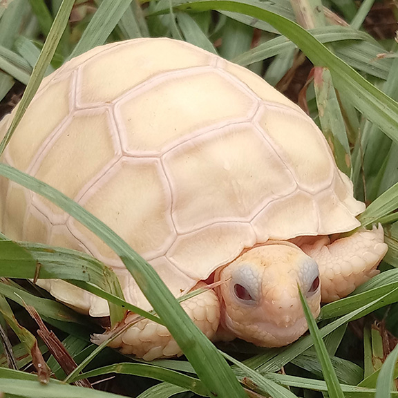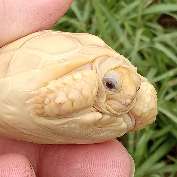 Ivory sulcata tortoises have dark ruby eyes and have creamy tan to brown coloration to their shell. Born in warm and sunny Florida, these beautiful young torts are ready for a new home!