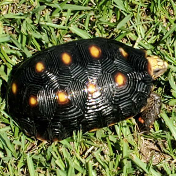 Our Redfoot breeders openly graze for much of their dietary needs. This is augmented with fresh greens, succulent plants, Opuntia Cactus, and various fruits (e.g., bananas and mangos). Adults also receive a small amount of protein (commercially packaged turtle food, broken down with water) to augment their predominantly vegetable diet. Hatchlings are fed similarly with very little or no protein.